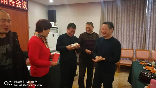 最后,李生华总经理为2019年度优秀销售人员张中临、韩萍、石磊、王建洲、牛学义、张俊杰等同志颁奖,全体参会人员聚餐,希望大家在2020年,取得更好的成绩,为“周口风机”的品牌贡献自己的力量!